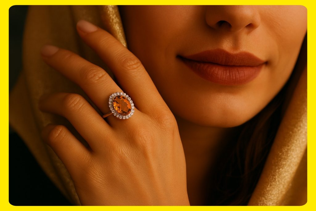 سیترین با رنگ طلایی مایل به نارنجی، در کنار بنفش تیره، نماد تعادل بین منطق و احساس است.